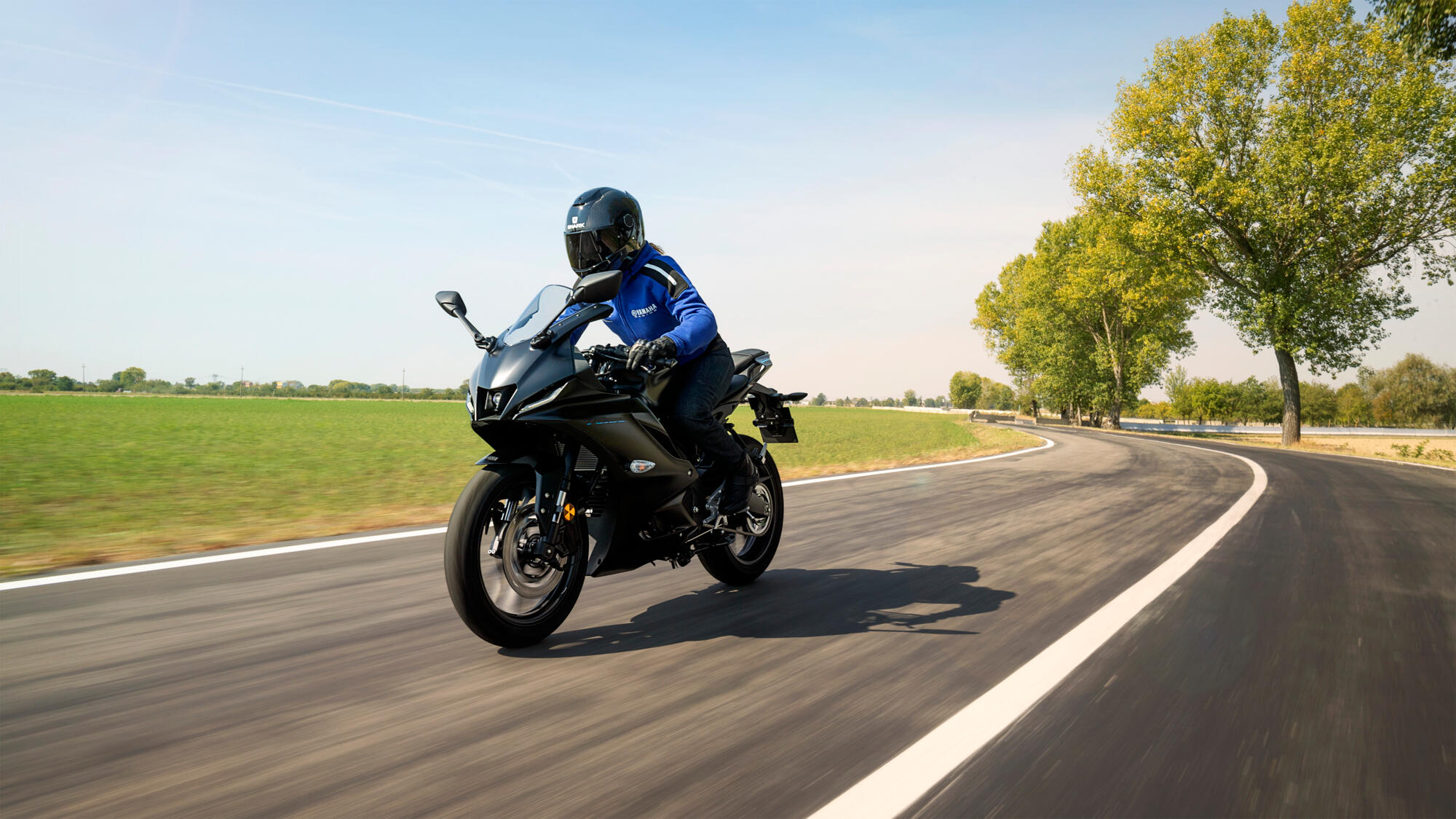 R står för racing Alla motorcyklar i den legendariska R-serien har sina rötter i Yamahas vinnande MotoGP® och World Superbike-maskiner. De nya kåporna på nya R125 har ärvts från R1 och R7, vilket ger denna lätta 125-kubiks Supersport storcykelkänsla. Utrustad med en kraftig LED-strålkastare, dubbla LED-positionsljus och M-formad front, lyser den av rent DNA från R-serien.