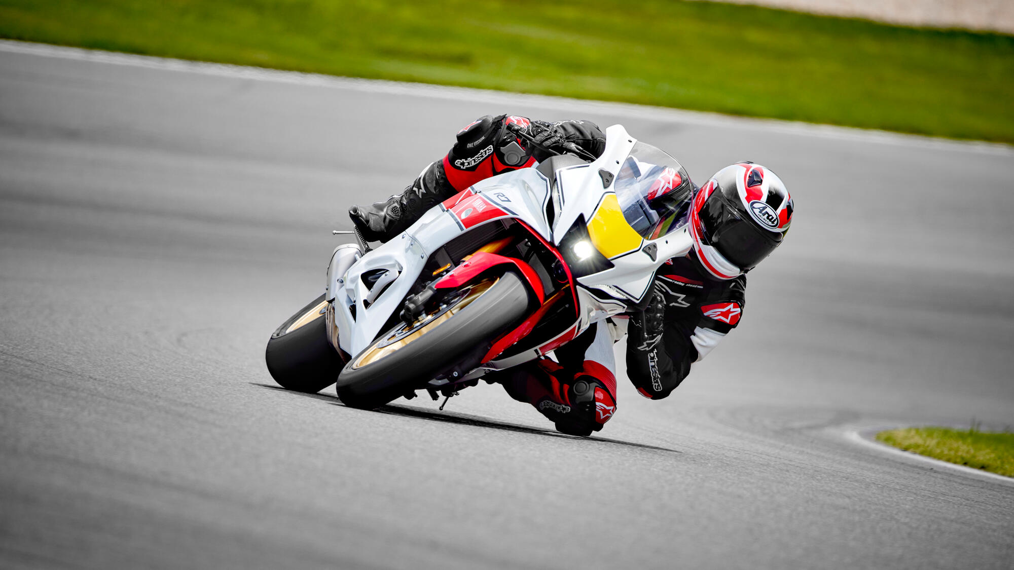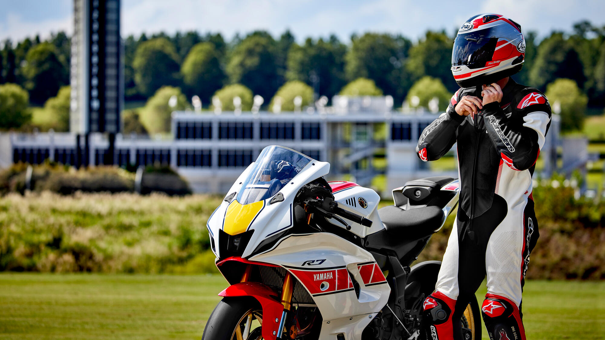 R7:an har skapats med samma rena tävlings-DNA som alla Yamaha Supersport-cyklar, och dess kompakta dimensioner och motor med högt vridmoment säkerställer en lustfylld åktur varje gång. Och för att fira 60 år av Grand Prix-racing har Yamaha skapat exklusiva R7 World GP 60th Anniversary med det ikoniska "speed block"-färgschemat i vitt och rött.